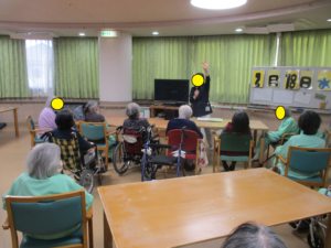 この職員さんのレク中は、参加されておられる方がいきいきと目を